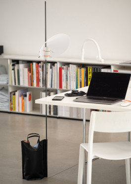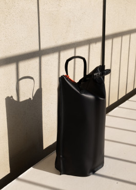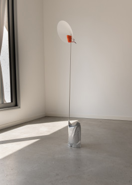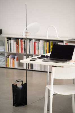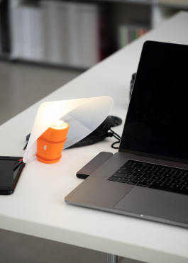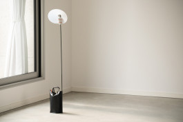 The [TL.21] pocket light is a minimalist floor lamp. The TL.21 is a collapsible floor lamp, purchased in response to the problem of shipping heavy bases. Looking for solutions in the outdoor industry, focusing on lightweight and collapsible materials that Im able to produce at best with local manufacturers, So TL.21 can be shipped in a package that is only a fraction of the size and weight of the lamp. The base of the light is made of a welded TPU coated nylon fabric used in the construction of inflatable kayaks, and is filled with water or sand for use. An LED light, which sits in a flap-like housing hidden under a recycled PET light shade, is supported by a tent pole.